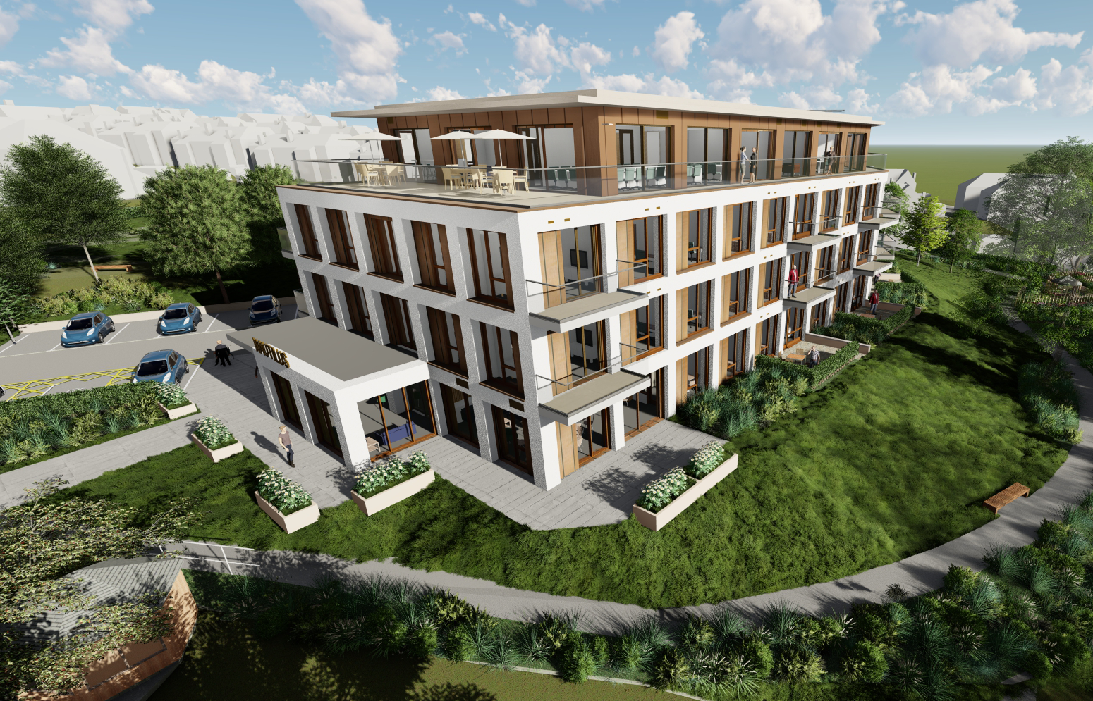 Urban Green led the external landscape design proposals, which focused on improving access, encouraging social interaction, and enhancing biodiversity. Key features include new communal social spaces for apartment residents, private patios for ground-floor apartments, and improved footpaths to enhance connectivity across the site.